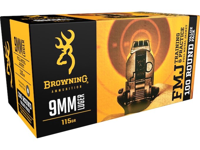Browning FMJ Ammunition 9mm Luger 115 Grain Full Metal Jacket 1000 round
