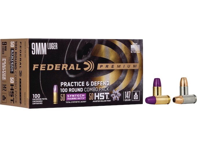 Federal Practice & Defend HST/Syntech Combo Ammunition 9mm Luger 147 Grain Jacketed Hollow Point & Total Synthetic Jacket 500 round