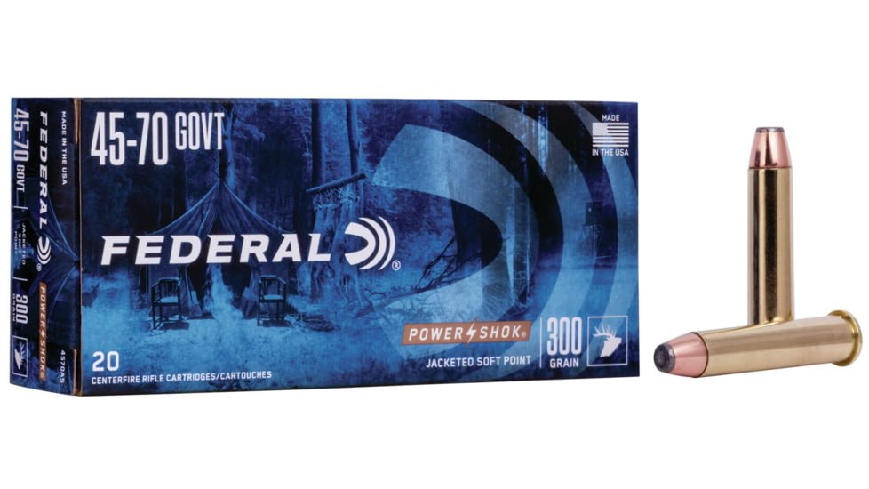 The only tag these loads won’t fill is the price tag. The traditional lead-core hunting Rifle Ammo in Federal Premium Power•Shok rifle loads provide solid accuracy and power at an affordable price. They feature reliable Federal brass, primers and powder and are suited to a wide variety of medium and big game. federal power shok 45-70