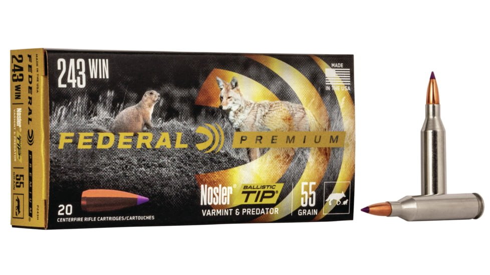 Federal Premium V-SHOK .243 Winchester 55 grain Nosler Ballistic Tip Centerfire Rifle Ammunition P243H Caliber: .243 Winchester, Number of Rounds: 500 ROUNDS