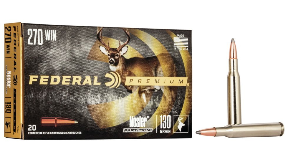 Specifications for Federal Premium VITAL-SHOK .270 Winchester 130 grain Nosler Partition Centerfire Rifle Ammunition: