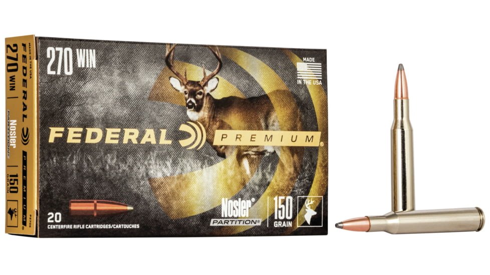 Federal Premium VITAL-SHOK .270 Winchester 150 grain Nosler Partition Centerfire Rifle Ammunition P270E Caliber: .270 Winchester, Number of Rounds: 500