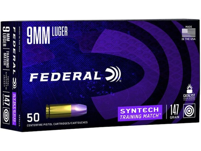 Federal Syntech Training Match Ammunition 9mm Luger 147 Grain Total Synthetic Jacket 1000 round