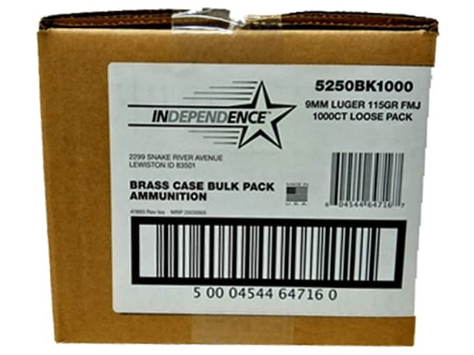 Independence Ammunition 9mm Luger 115 Grain Full Metal Jacket Bulk 1000 round