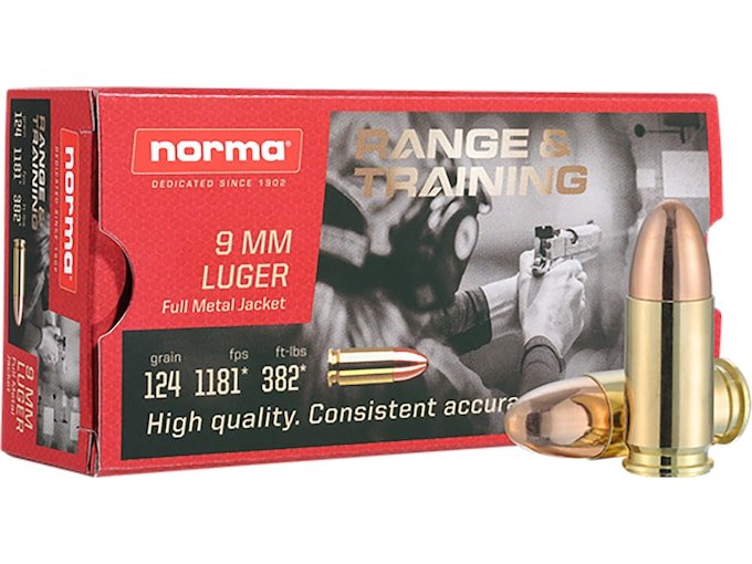 Norma Range & Training Ammunition 9mm Luger 124 Grain Full Metal Jacket 1000 round