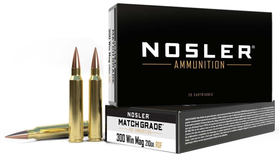 Nosler 60158 Match Grade RDF 300 Win Mag 210 gr Hollow Point Boat Tail (HPBT) 20 – Match Grade-RDF ammunition brings all of the ballistic advantages of the RDF bullet line to loaded ammunition. Designed specifically for long range competition, the RDF bullets feature highest in class BC’s and incredibly small meplats for consistent precision and flat trajectory at long range. Loaded in premium Nosler brass, Match Grade-RDF ammunition is carefully loaded with precise, high-performance powder charges for accuracy and consistency that competitors can depend on.