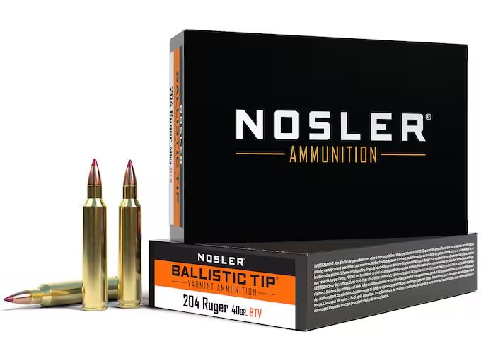 Nosler BT Varmint 204 Ruger Ammo 32 Grain Nosler Ballistic Tip Polymer Tip Lead Free Box of 500