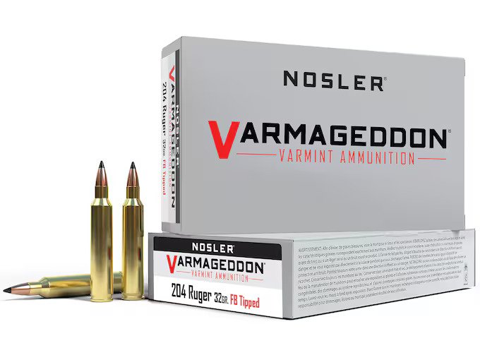 Nosler Varmageddon 204 Ruger Ammo 32 Grain Nosler Varmageddon Polymer Tip Box of 500