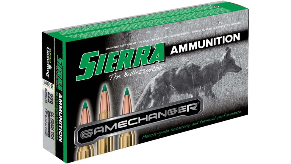Product Info for Sierra GameChanger .223 Remington 64 Grain, Sierra Tipped GameKing Brass Cased Centerfire Rifle Ammunition
