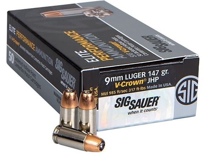 Sig Sauer Elite Performance Ammunition 9mm Luger 147 Grain V-Crown Jacketed Hollow Point 500 round