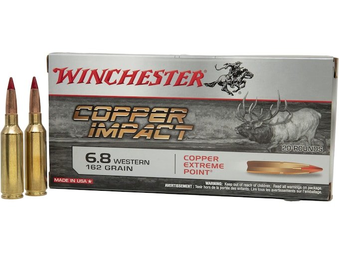 Winchester Copper Impact Ammunition 6.8 Western 162 Grain Solid Copper Extreme Point Polymer Tip Boat Tail 500 rounds
