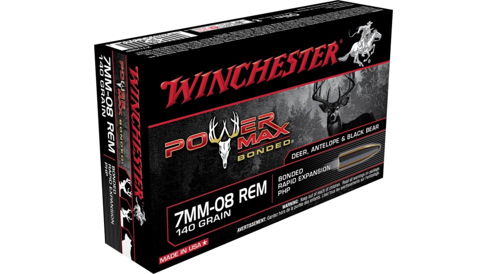 Specifications for Winchester POWER MAX BONDED 7mm-08 Remington 140 grain Bonded Rapid Expansion Protected Hollow Point Centerfire Rifle Ammunition: