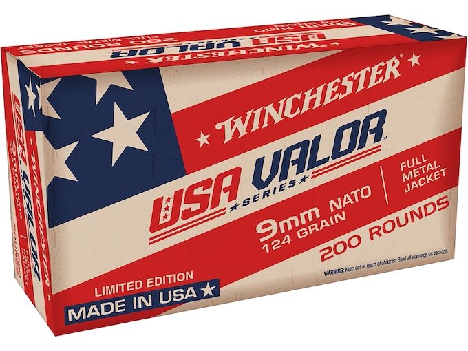 Winchester USA Valor NATO Ammunition 9mm Luger 124 Grain Full Metal Jacket 1000 round